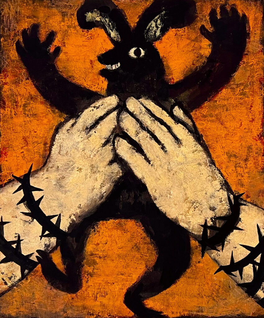 「マスター」2026 年 72.0×60.0 ㎝ パネルに寒冷紗 石膏 水干 弁柄 ピグメント