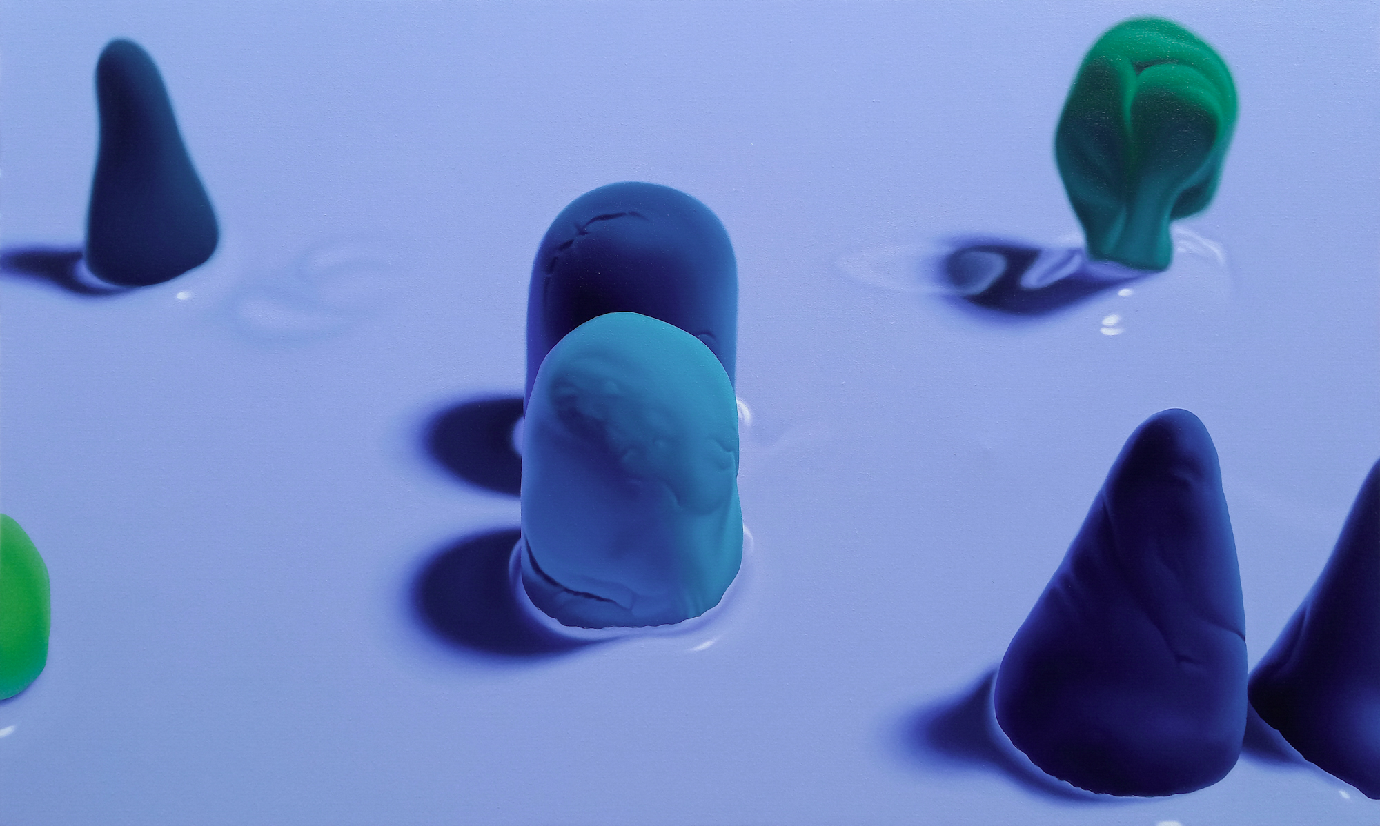 私は、自ら撮影した写真だけでなく、雑誌や新聞、インターネットといった多様なメディアから収集したイメージ、さらにはフィギュアといった既製の造形物を素材として用いている。 それらをコラージュやジオラマの形として再構築し、絵画へと転換することでイメージ同士の結びつきは強化され、見立ての次元を超えた現実的な質感を持つ風景となる。